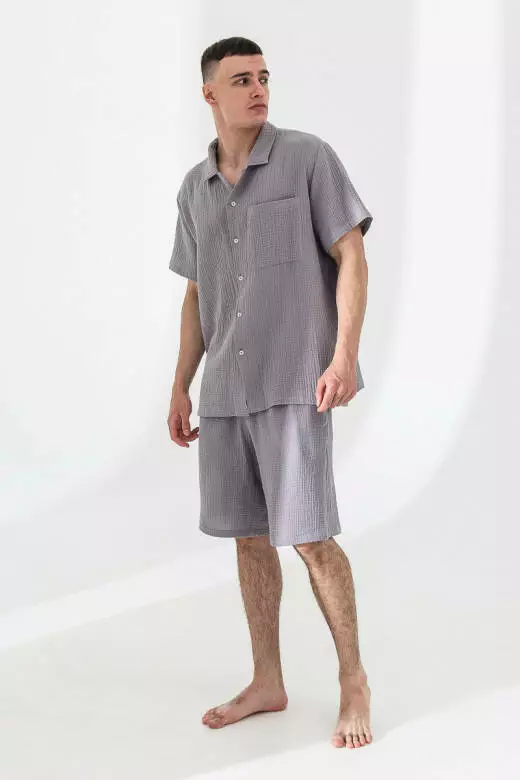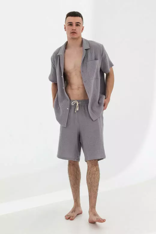 Чоловіча сорочка муслінова з коротким рукавом, сірий