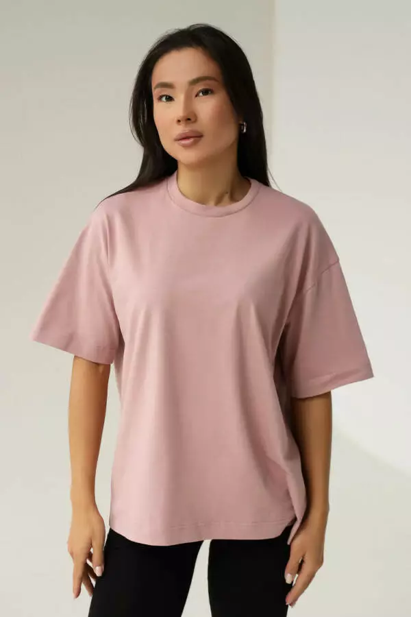 Ніжний рожевий колір додає футболці витонченості й підкреслює жіночність. Цей відтінок легко поєднується з іншими кольорами, що дозволяє створювати як романтичні, так і нейтральні образи, залежно від настрою. Рожевий колір завжди асоціюється з ніжністю та легкістю, тому він додає образу свіжості та природного шарму, роблячи вас більш яскравою та водночас витонченою.