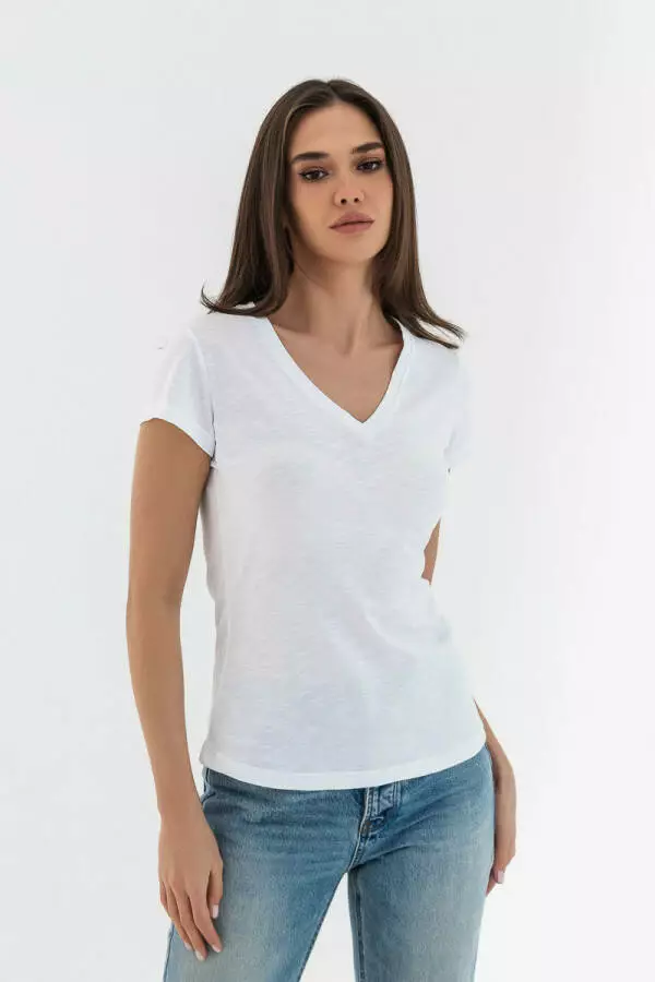 Футболка жіноча бавовняна з V-вирізом German Volf Білий XS(48) 22015