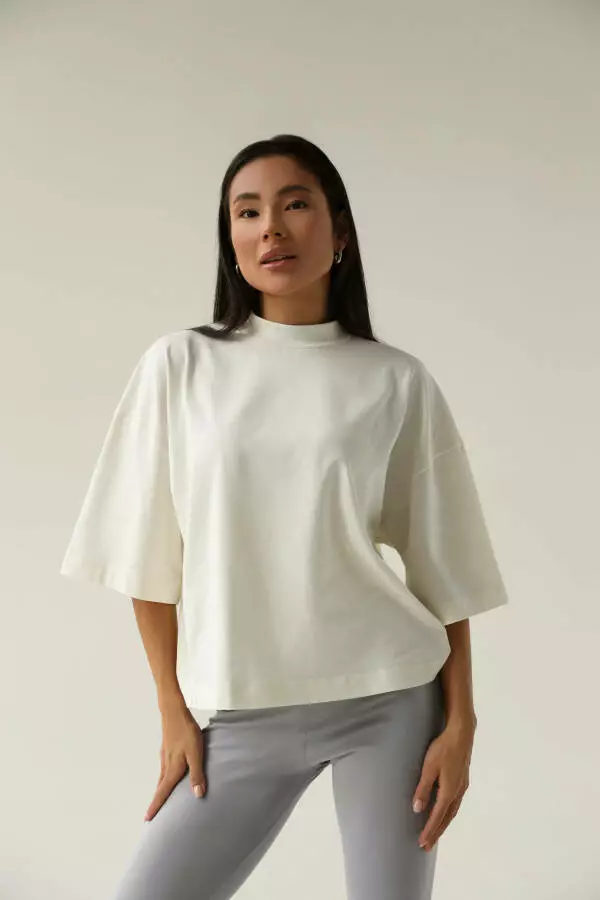 Футболка жіноча оверсайз з подовженим рукавом German Volf Молоко M(44) 23166