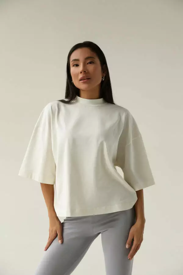 Футболка жіноча оверсайз з подовженим рукавом German Volf Молоко S(42) 23166