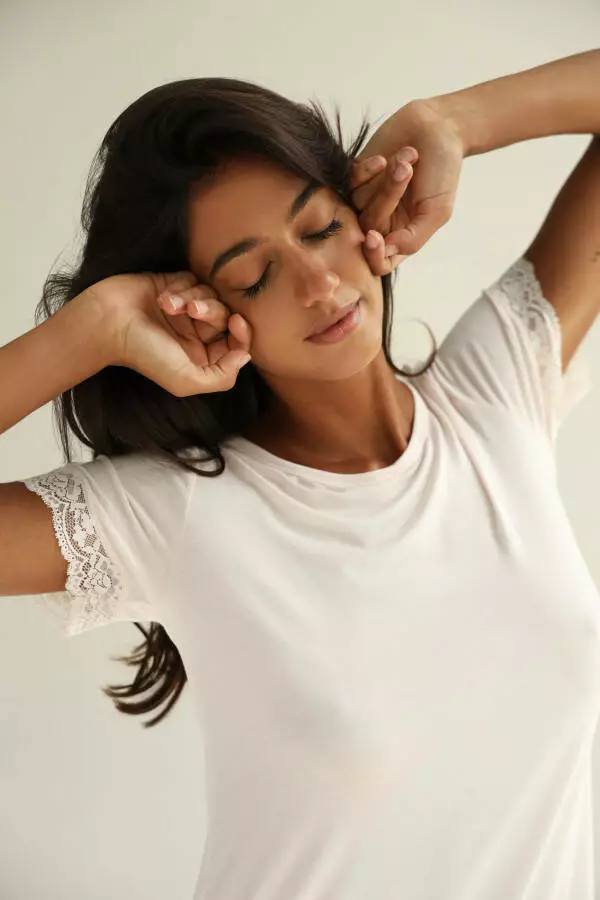 Футболка-сорочка для сну з модалу з мереживом у кремовому кольорі — це втілення витонченості та комфорту, створене для тих, хто цінує якість та стиль навіть у нічному одязі. Модал, з якого виконана сорочка, відрізняється винятковою м'якістю та гладкістю. Цей натуральний матеріал не тільки приємний на дотик, але й має відмінні дихаючі властивості, підтримуючи оптимальний мікроклімат для комфортного сну. Модал ефективно вбирає вологу та пропускає повітря, забезпечуючи відчуття свіжості протягом усієї ночі.
