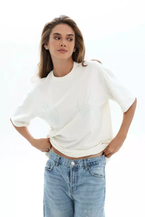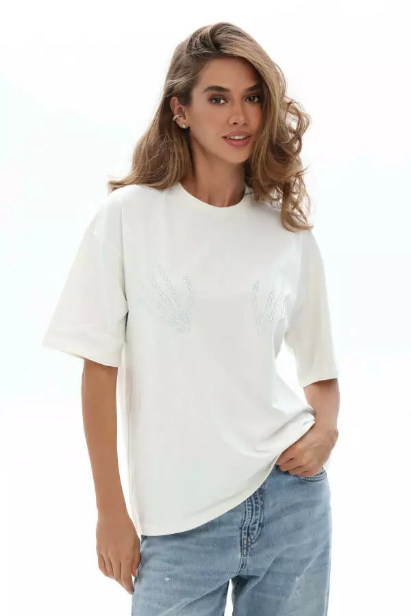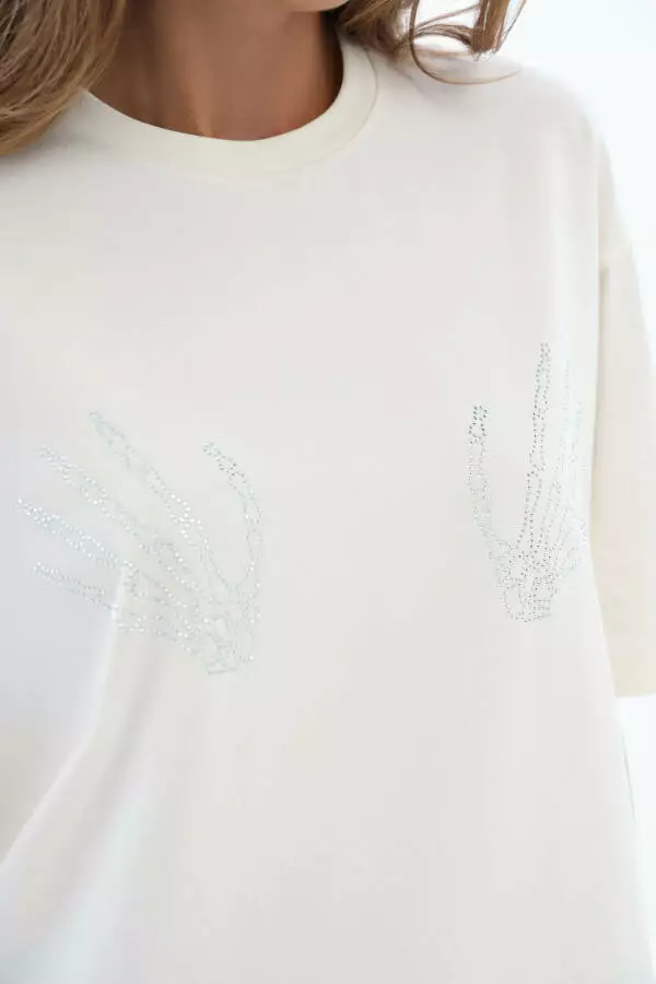 Футболка жіноча базова з аплікацією руки зі страз German Volf молоко ХL-2XL (48-50) 25052