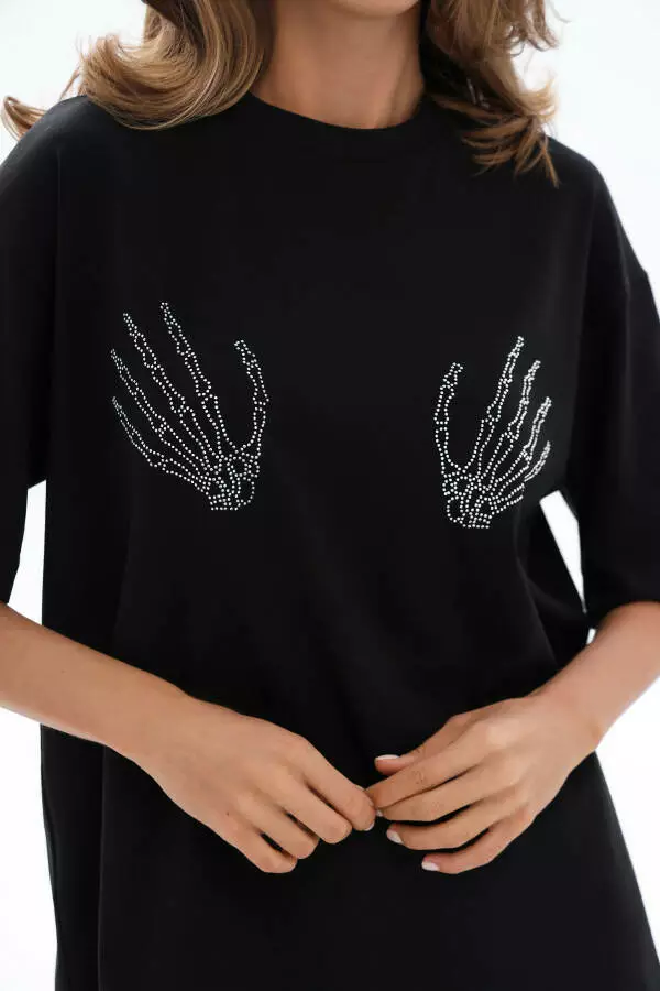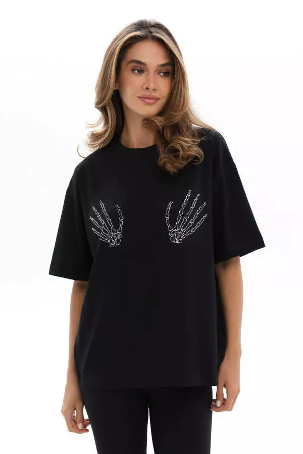 Футболка жіноча базова оверсайз із аплікацією зі стразів — це