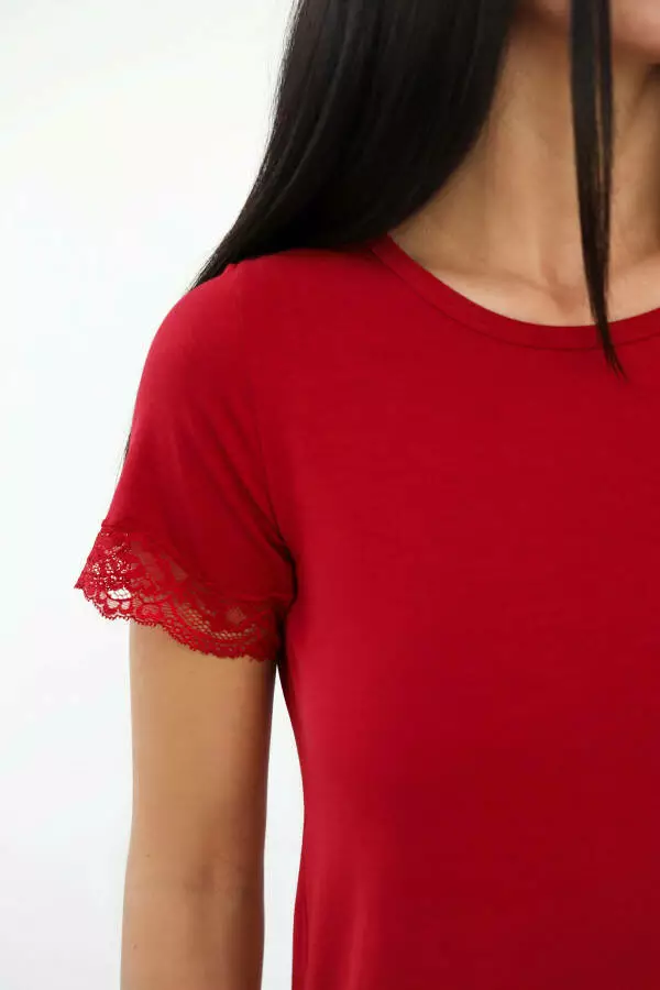 - Тип модели: Футболка жіноча для сну модал з мереживом