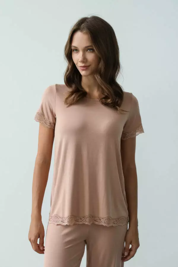 - Тип модели: Футболка жіноча для сну модал з мереживом
