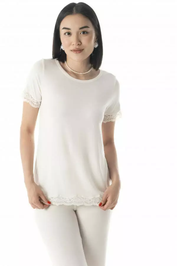 Футболка жіноча для сну модал з мереживом German Volf 24086 Молочний M 582184