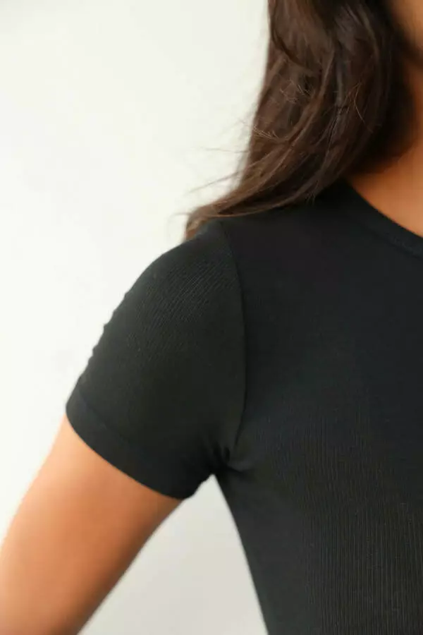 Футболка жіноча з модалової тканини в мілкий рубчик від брендового виробника German Volf. Модал — екологічно чистий матеріал нового покоління, виготовлений із целюлозних волокон бука. Він відомий своєю мʼякістю, повітропроникністю та довговічністю, що робить його відмінним вибором для одягу та білизни. Одяг з модалу також можна прати та сушити в машині, тому вони зручні та прості у догляді