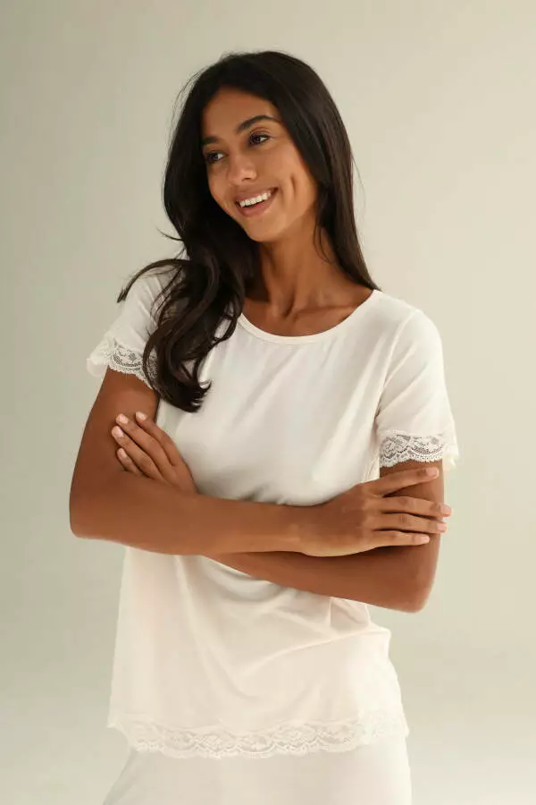 Футболка жіноча з модалового трикотажу з мереживом German Volf 24083 Кремовий M 583184