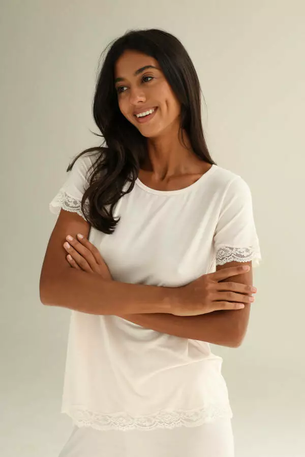Футболка жіноча з модалового трикотажу з мереживом German Volf 24083 Кремовий XS 583181