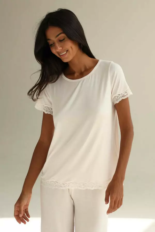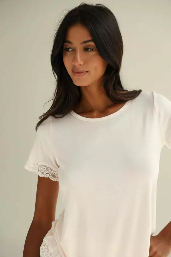 - Тип модели: Футболка жіноча з модалового трикотажу з мереживом