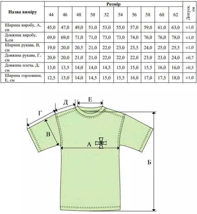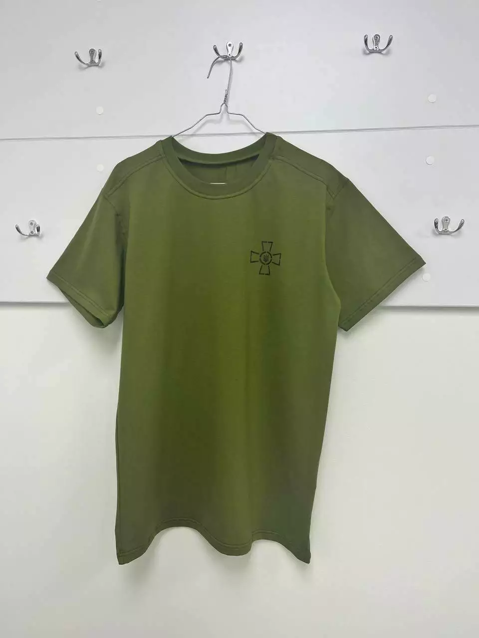Футболка виконана з бавовняного кулірного полотна, яке добре пропускає повітря, за рахунок наявного еластану тягнеться, але не втрачає першочергового вигляду. Виріб виконаний відповідно до технологічних умов Міністерства оборони України.