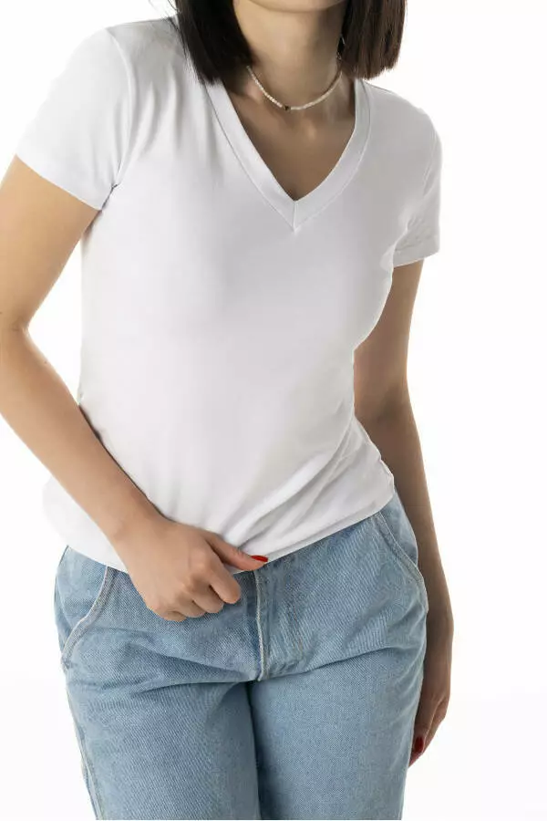 Жіноча футболка з V-подібним вирізом стане основою вашого гардеробу, підійде для будь-яких подій — від роботи до прогулянки з друзями. Поєднуючи її з жакетом чи кардиганом, ви легко створите стильний багатошаровий лук.