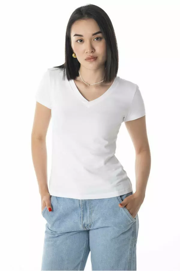 Жіноча футболка з V-подібним вирізом стане основою вашого гардеробу, підійде для будь-яких подій — від роботи до прогулянки з друзями. Поєднуючи її з жакетом чи кардиганом, ви легко створите стильний багатошаровий лук.