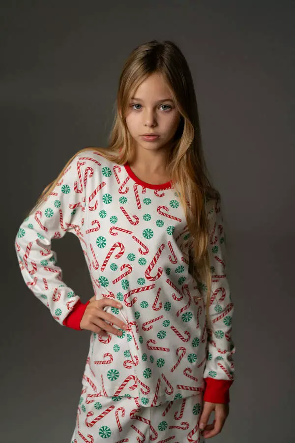 Дитяча піжама Candy Cane створена з м’якого бавовняного трикотажу,