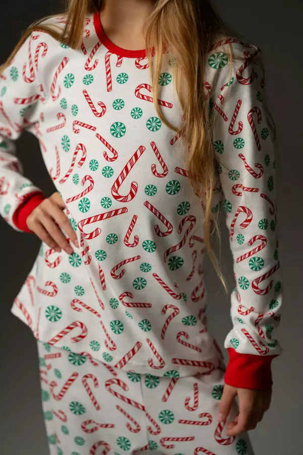 Дитяча піжама Candy Cane створена з м’якого бавовняного трикотажу,