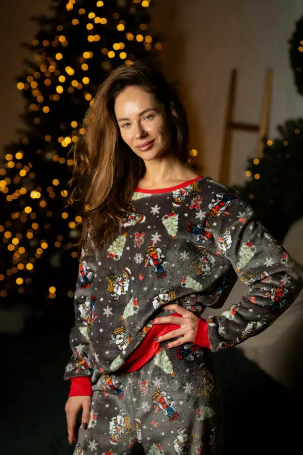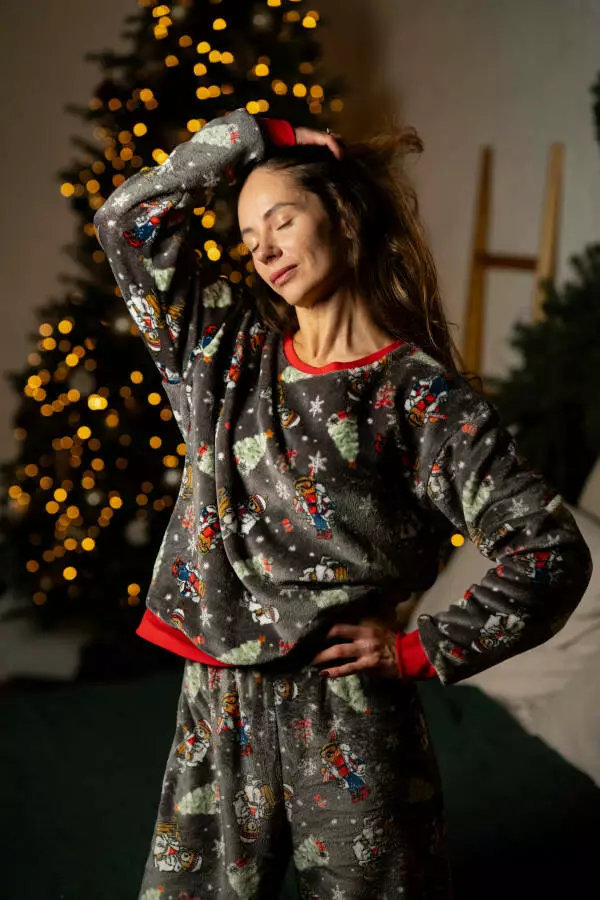 Піжамний костюм із м’якого велсофту з новорічним принтом створений