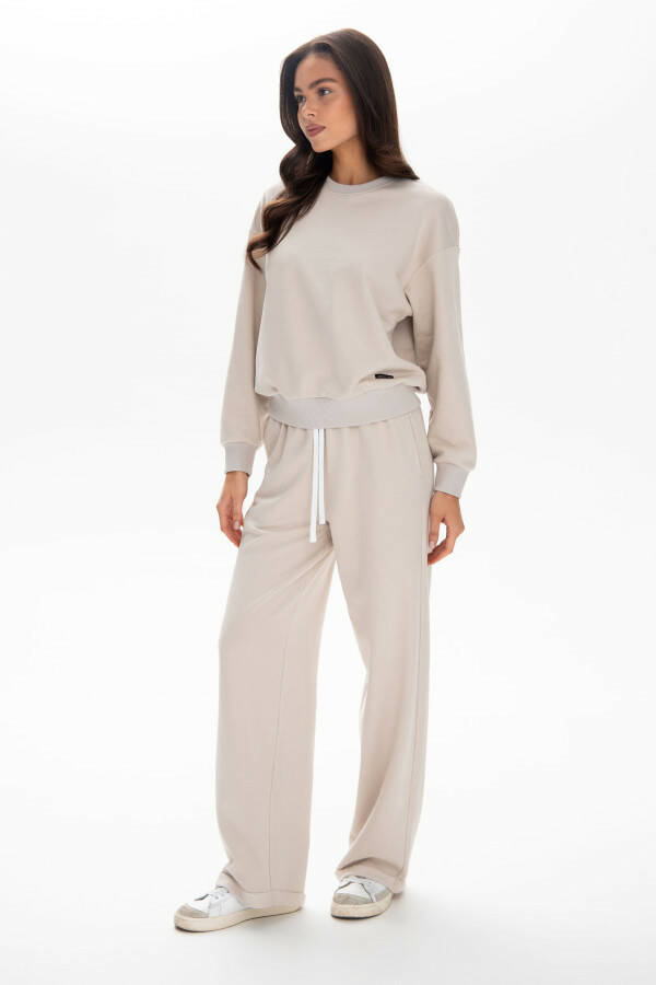 Світшот у стильному відтінку тауп виготовлений із фірмового бавовняного флісу — тканини середньої щільності з легким, «хмарним» відчуттям. Вільний крій не сковує, а еластична структура забезпечує максимальний комфорт щодня.