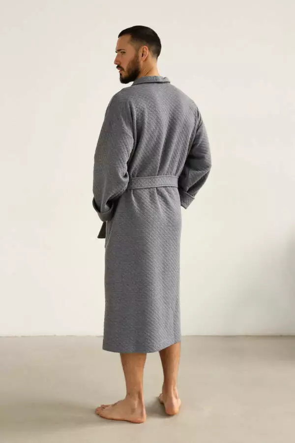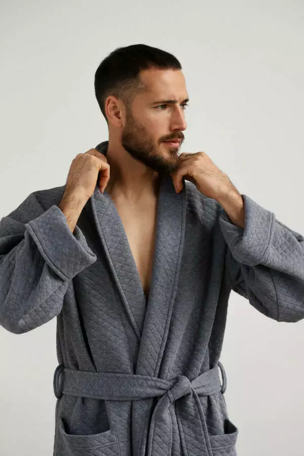 Темно-сірий колір додає халату елегантності та стриманості. Такий колір виглядає стильно та підходить для чоловіків будь-якого віку. Темно-сірий відтінок також практичний у догляді — він не вицвітає і зберігає свою насиченість навіть після багаторазових прань. Це робить халат не тільки стильним, але й практичним вибором для повсякденного використання.