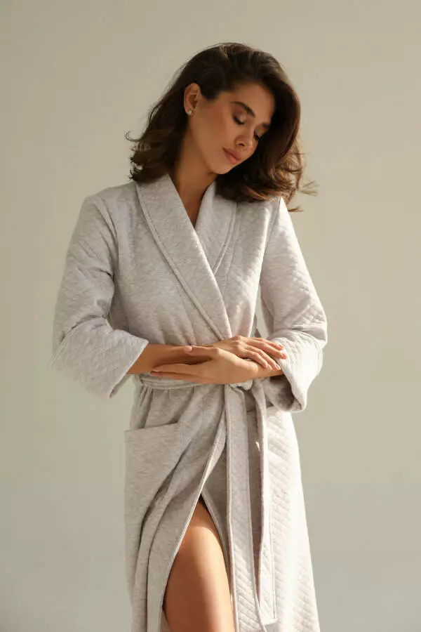 Жіночий халат виготовлений з високоякісного утепленного трикотажу, що забезпечує не лише комфорт, але й стильний вигляд. М'яка та приємна на дотик тканина ніжно облягає тіло, даруючи відчуття легкості та затишку.