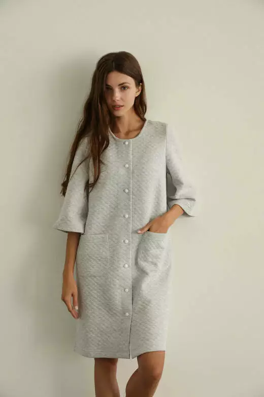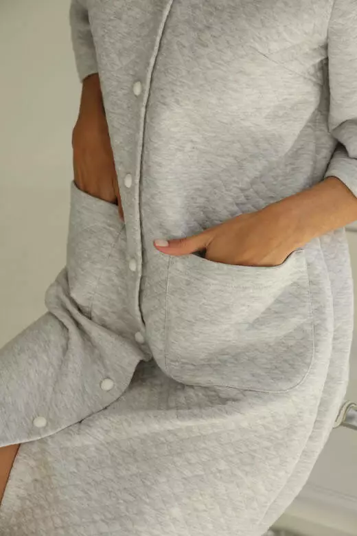 Домашній одяг повинен буду не тільки комфортним але і підкреслювати ваше відчуття стилю. Жіночий халат із стьобаного утепленого трикотажу – втілення комфорту та витонченості. Модель представлена з двома кишенями, прикрашеними маленькими світлими ґудзиками, які додають елегантність до вашого вигляду. Тканина трикотаж капітон (80% бавовна, 20% поліестер), Вафельна тканина натуральна, м'яка, дуже добре пропускає повітря та випаровує вологу. Вона дуже легка і не змінює колір при пранні та не сідає. Ці якості роблять вафельні халати найзручнішими у використанні. Доступний для замовлення в таких розмірах: s,m,l, xl. Той самий є комфортабельний, домашній варіант одягу. Вибір між кавовим та сірим меланжем дозволяє підкреслити ваш особистий стиль. Поглибіть відчуття спокою та вишуканості, обираючи цей стильний елемент гардеробу.