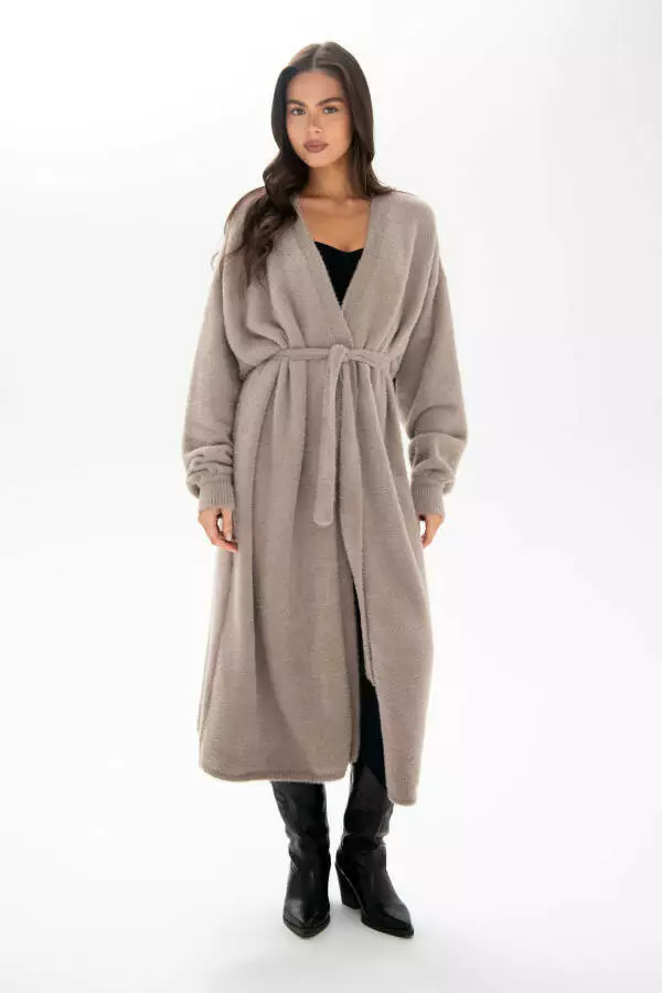 Кардиган жіночий в'язаний довгий, у відтінку beige – це стильне й