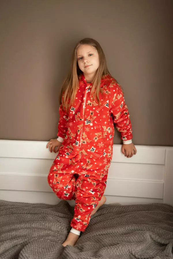 Дитячий теплий комбінезон-сліп кігурумі піжама German Volf червоний різдвяний принт 152 см зріст 24007