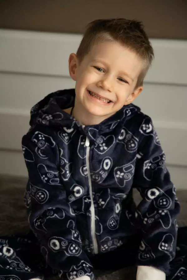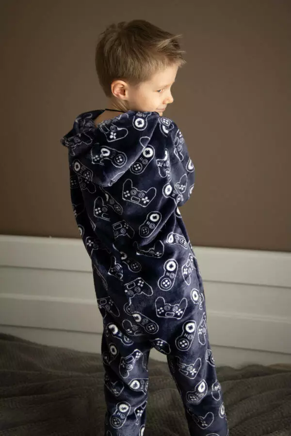 6Теплий дитячий комбінезон кігурумі піжама German Volf плюшевий з капюшоном та кишенями синій (принт джойстик) 116см зріст