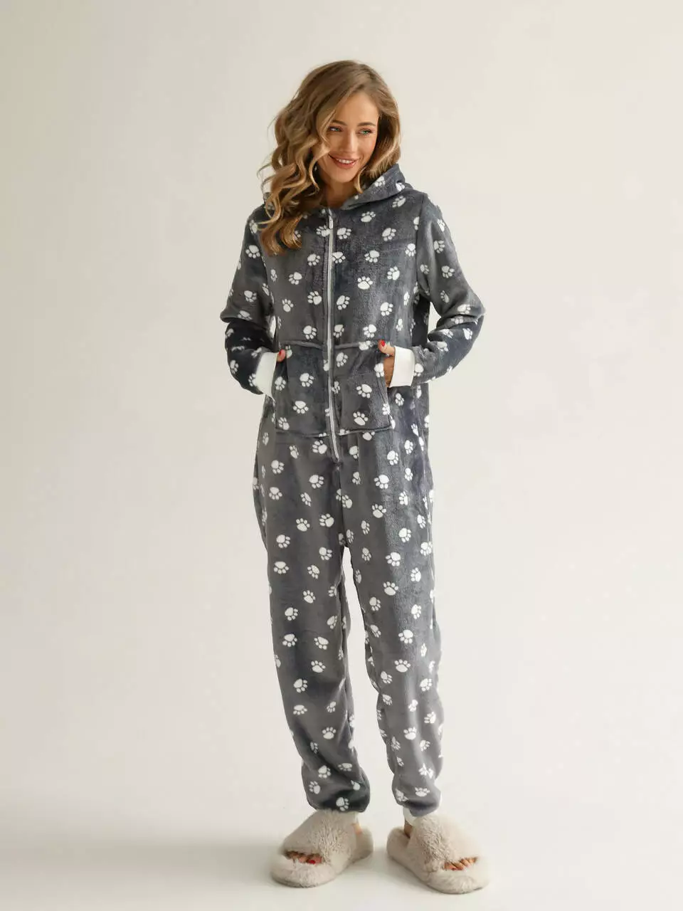 Комбинезон жіночий, домашній велсофт, колір сірий