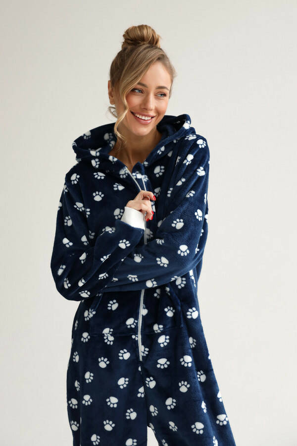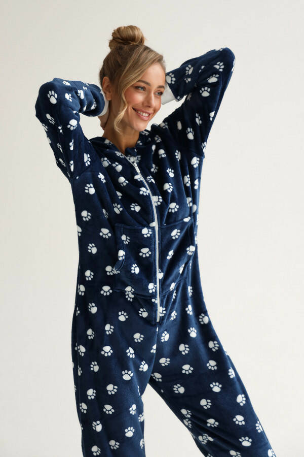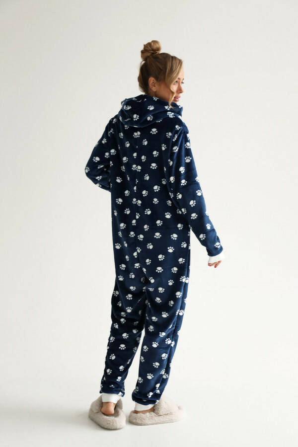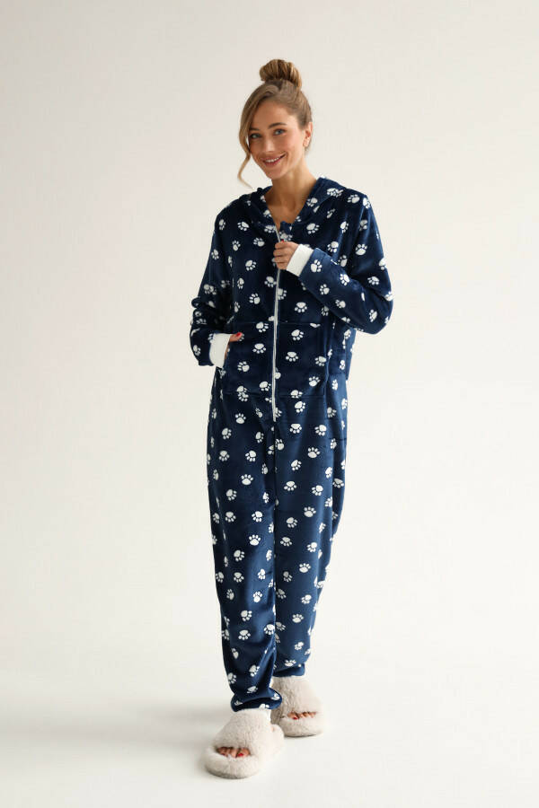 Жіночий комбінезон — це втілення комфорту та затишку, яке стане незамінною частиною вашого гардеробу. Синій колір комбінезона додає йому благородності та глибини, а принт у вигляді лапок створює веселий та оригінальний акцент, який підкреслює індивідуальність власниці. Цей принт робить комбінезон особливим для тих, хто цінує оригінальний і неповторний дизайн. Завдяки своєму вільному крою, комбінезон не обмежує рухів, забезпечуючи максимальний комфорт під час носіння.