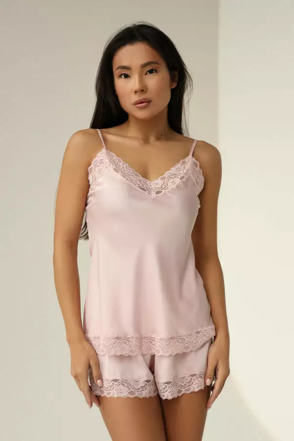 Комплект шовковий топ та шорти з мереживом,