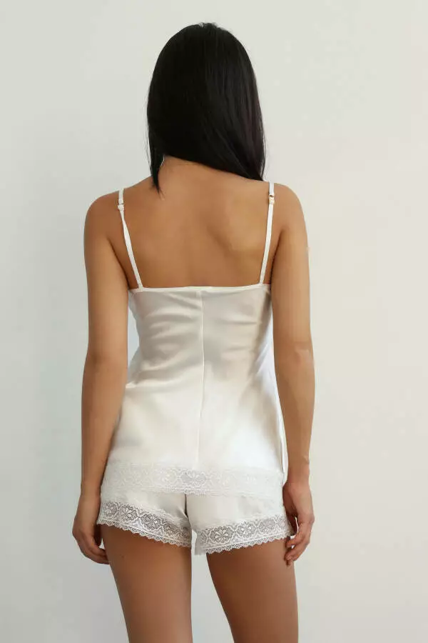 - Тип модели: Комплект шовковий жіночий топ та шорти з мереживом
