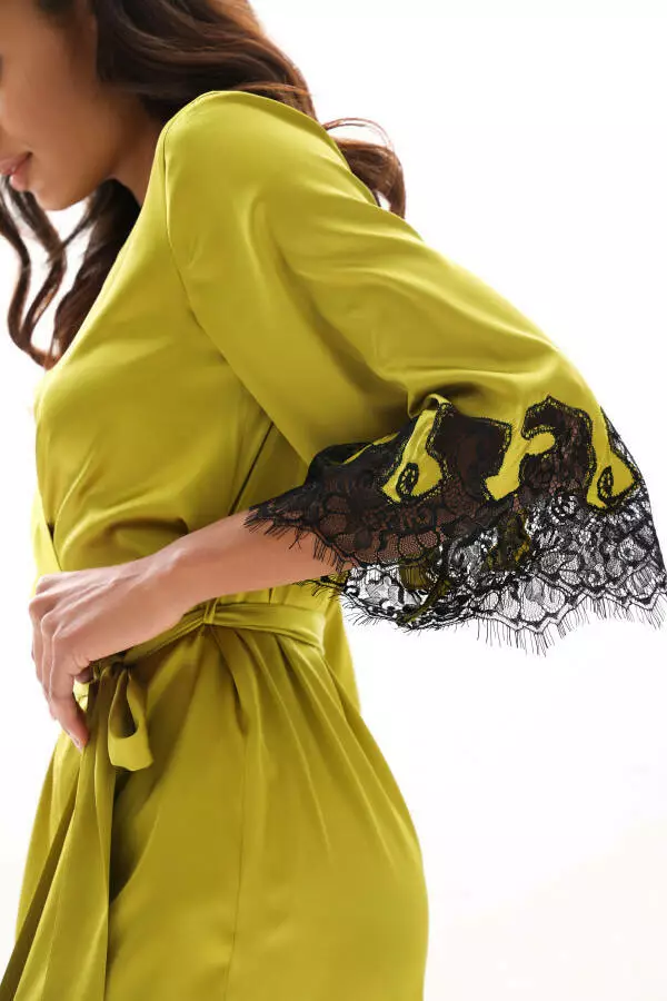 Комплект жіночий шовк з мереживом халат та сорочка German Volf олива M(44)24153