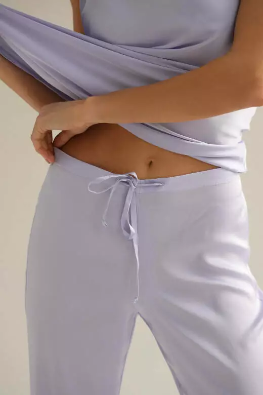 Насолоджуйтесь затишком та комфортом у нашому шовковому домашньому комплекті у кольорі лаванди. Ніжна тканина забезпечить вам максимальну м'якість і комфорт під час відпочинку вдома. Цей комплект створений, щоб дарувати вам почуття ніжності та легкості