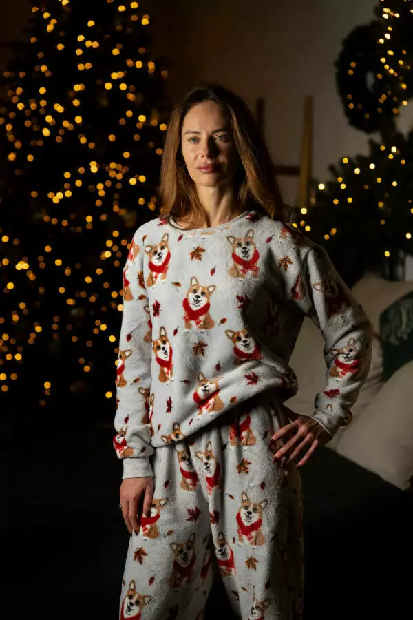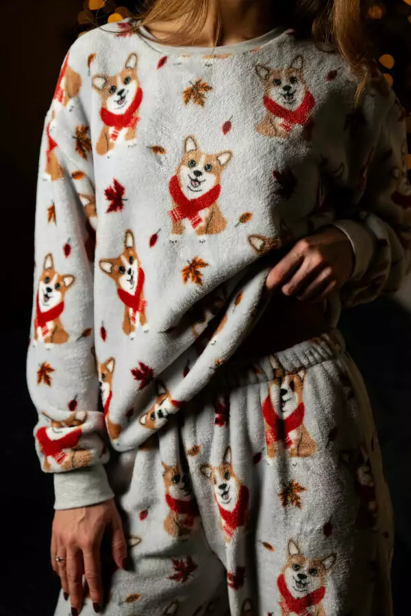 Піжамний костюм із м’якого велсофту з милим принтом коргі створений