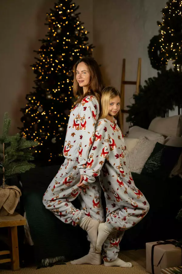 Піжамний костюм із м’якого велсофту з милим принтом коргі створений