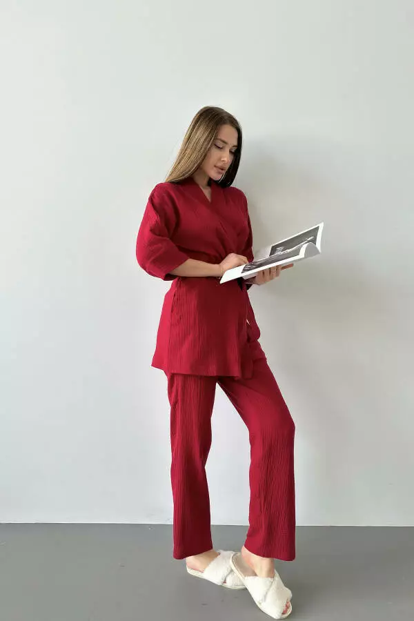Костюм домашній жіночий халат короткий та штани German Volf 24027 Бордо L 520185