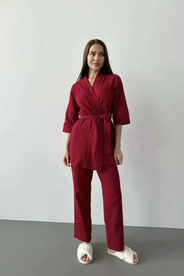 Костюм домашній жіночий халат короткий та штани German Volf 24027 Бордо S 520183