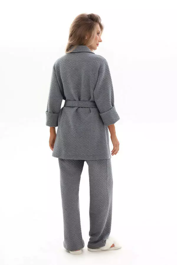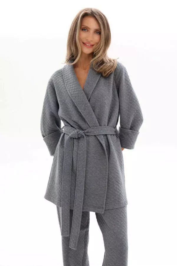 Костюм домашній жіночий капітоній кардиган на запах та штани German Volf 25022 темно-сірий L 735185