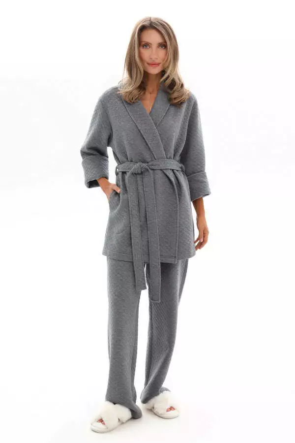 Костюм домашній жіночий капітоній кардиган на запах та штани German Volf 25022 темно-сірий M 735184