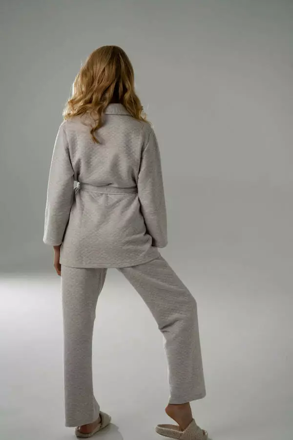 Костюм домашній жіночий капітоній кардиган на запах та штани German Volf 25023 кавовий меланж L 736185