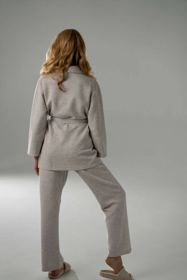 Костюм домашній жіночий капітоній кардиган на запах та штани German Volf 25023 кавовий меланж S 736183