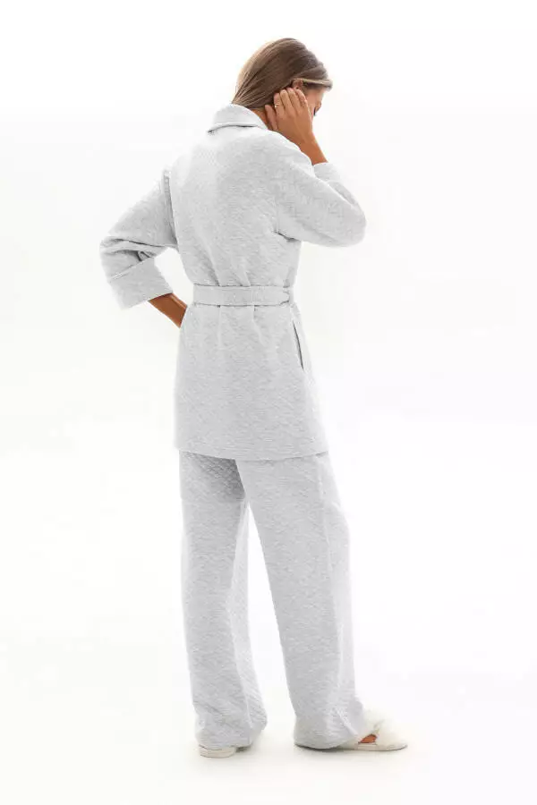 Костюм домашній жіночий капітоній кардиган на запах та штани German Volf 25024 сірий меланж L 737185