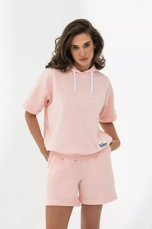 Костюм футболка з капюшоном та шорти жіночий, рожевий кварц