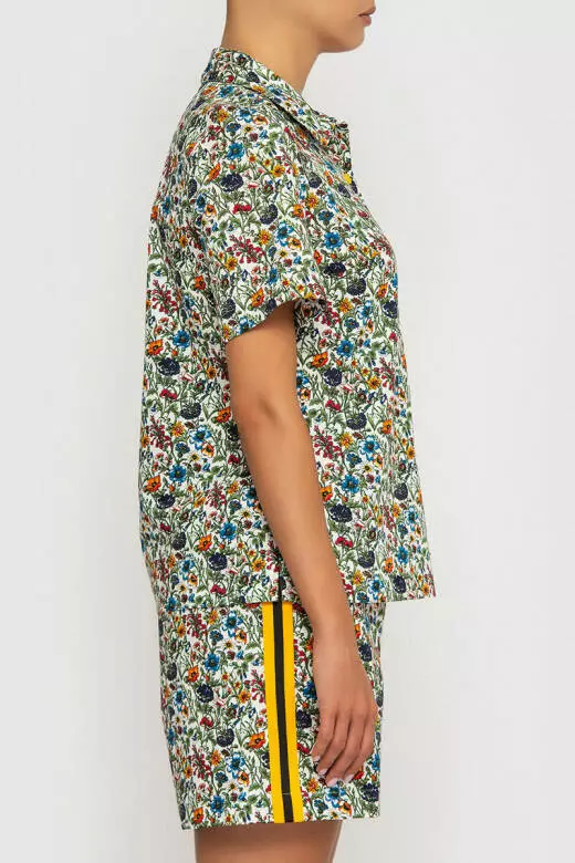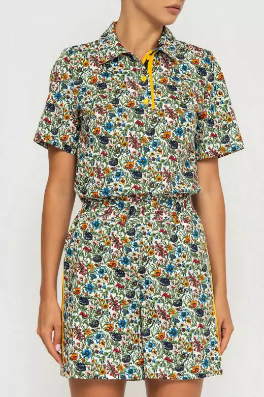 Стильний бавовняний костюм привертає увагу незвичним жовтими вставкам, що відтіняють зелені відтінки квіткового принту. В такому костюмі ви точно не будете, не поміченою на вулиці. Футболка типу поло вільного крою, з невеликим трикутним комірцем та жовтими ґудзиками. Шорти на ризниці підкреслюють вашу талію та приємно прилягають до тіла. Є два варіанта носіння моделі, як заправленою в шорти, що виділяє вашу фігуру, так і більш просторий образ. Виготовлений із сорочкової тканини (100% бавовна), Доступний для замовлення в таких розмірах: s,m,l, xl. Ця модель гарантує вам приємний на дотик матеріал, ідеально підходить для літніх днів.Обирайте цей костюм для того, щоб створити весняно-літній образ, який виручить вас в будь-яких ситуаціях.