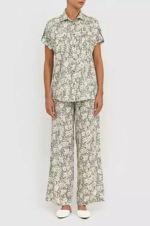 Костюм літній жіночий, льняна сорочка з коротким рукавом та штани