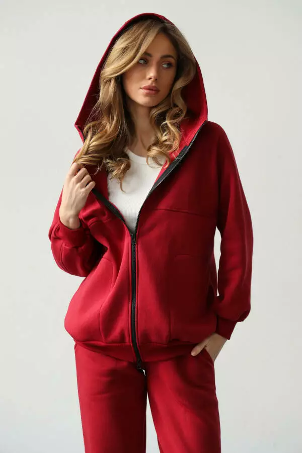 Костюм на флісі утеплений, штани з кокеткою та кофта на блискавці German Volf 24020 Бордо XL 505186