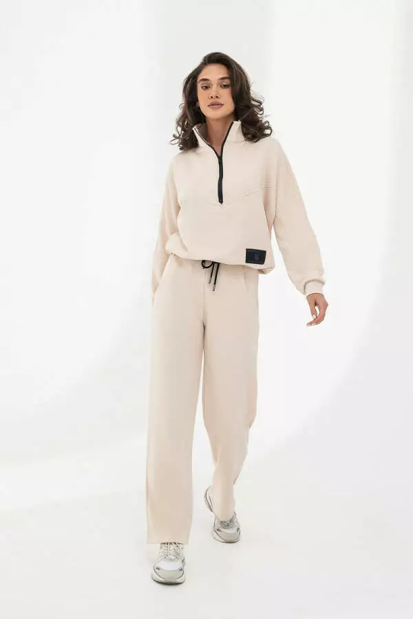 Жіночий спортивний костюм для щоденного використання від відомого бренду German Volf. Ця зручна модель в спортивному стилі підкреслить вашу ніжність і жіночність, виділяючи вас з натовпу. Штани та кофтинка-анорак бежевого кольору доступні в усіх розмірах для замовлення. Костюм зручний і комфортний, вільного крою, виготовлений з трикотажу зі складом 80% бавовни і 20% поліестеру. Широкий ворот з сріблястою блискавкою робить ваш образ дуже стильним. Штани з двома кишенями та резинками біля гомілки створюють обʼємний образ. Натуральна тканина відводить зайву вологу та добре утримує тепло, пропускає повітря. Костюм не кошлатиться і не линяє. Цей бежевий костюм з регланом ідеальний для створення ніжного базового образу, але його також можна поєднувати з іншими елементами гардеробу.