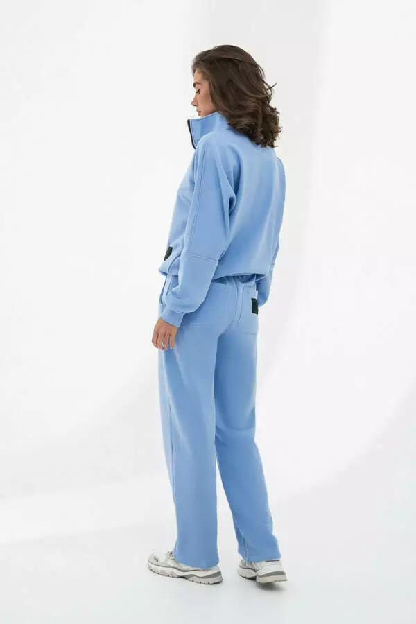 Штани та анорак небесно блакитного кольору доступні в у всіх розмірах для замовлення. Костюм теплий і комфортний, вільного крою. Тканина трикотаж, склад 70% бавовна, 30% поліестер. Широкий ворот з сріблястою блискавкою зробить ваш аутфіт дуже гарним і стильним. Штани супер комфортні, вільні з двома кишенями та резинками біля гомілки, за допомогою якої створюється крутий обʼємний образ. Натуральна тканина відводить зайву вологу та добре утримує тепло, пропускає повітря. Ще один плюс цього костюму, що він не кошлатиться і не линяє. Цей блакитний костюм з регланом ідеальний ніжний базовий варіант, але також можно носити його, як разом так і поєднувати з іншими елементами вашого гардеробу. З цією моделью ви завжди будете виглядати стильно, ніжно і різноманітно.
