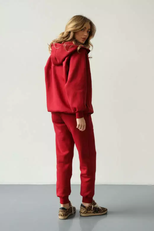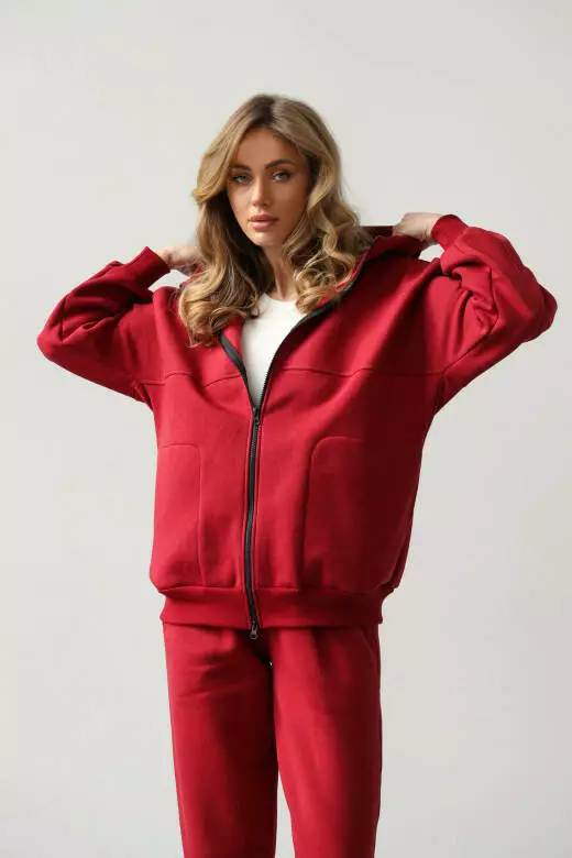 Костюм спортивний, жіночий на флісі утеплений, штани з кокеткою та кофта на блискавці, колір бордо